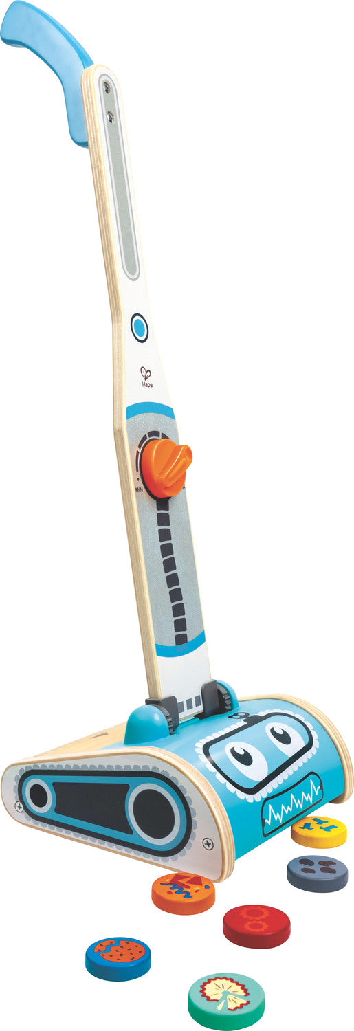 - EXCITING DESIGN: The vacuum cleaner features a robot face to make this toy even more exciting.