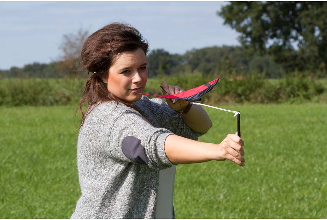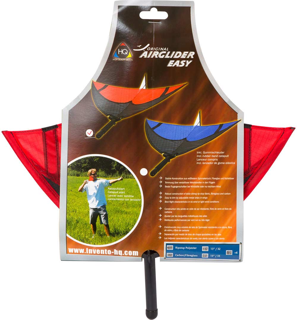 Our new, smaller Airglider. This model can be adjusted using small metal strips in the wings. You can set a curve flight and optimize the adjustment angle. Through trial and error, the user learns about practical aerodynamics and the relationship between the start speed and the settings made. With a successful start and corresponding conditions, the Easy stays aloft up to 30 seconds. Young and older pilots alike must take the bull by the horns in order to retrieve it back. Width: 32 cm / 13 Length: 33 cm / 13 Sail: Polyester Frame: Carbon + Fibreglass 2 mm Age: + 6 Start: rubber band catapult (incl.) Accessory: release system