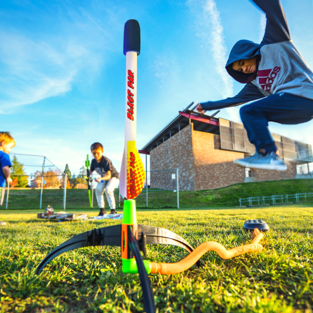 Our latest Blastpad® Rockets stomp high high in the air! We make the best air powered outdoor rockets that are 100% kid powered!