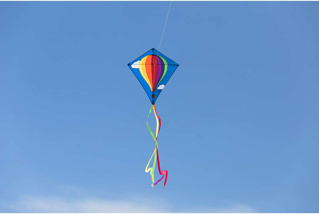 These diamond kites are made from Ripstop-Polyester and fiberglass; come ready to fly, and have fun colorful graphics for all ages.