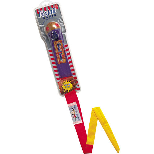 A Foxtail that breaks the sound barrier every time you throw it. Whistles lodged in the leather-covered soft sponge ball shriek as it whizzes through the air.