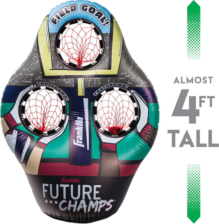 What young football star would "pass" on this? A 45" inflatable target presents 3 netted holes for perfecting passes and kicking field goals. Includes 2 soft footballs and a pump.