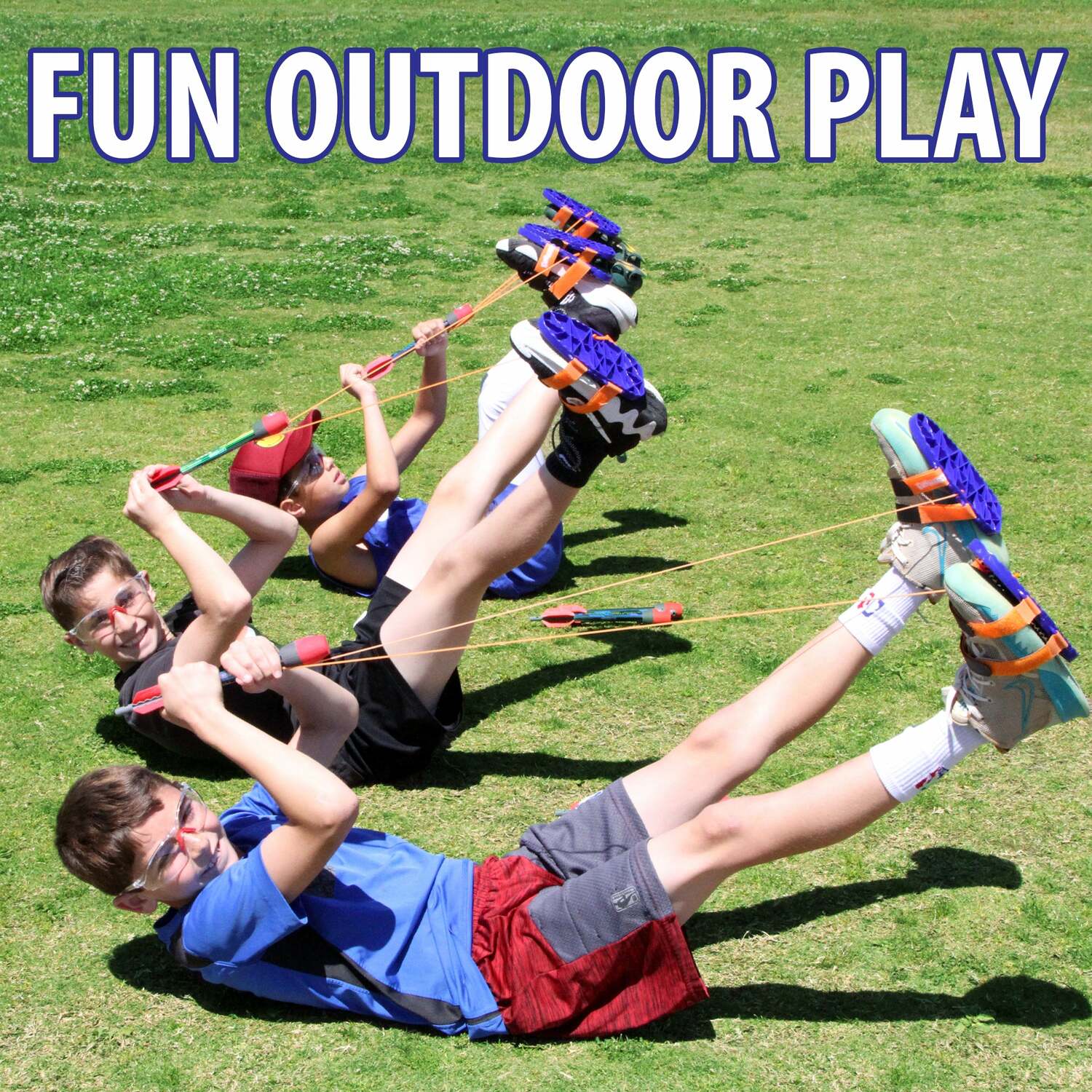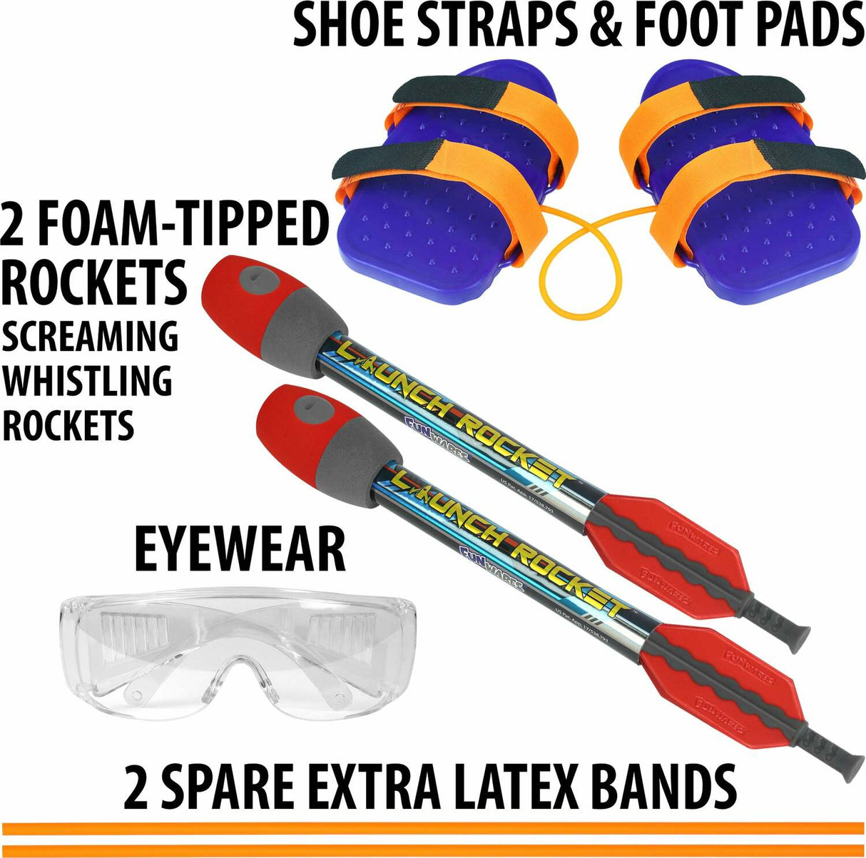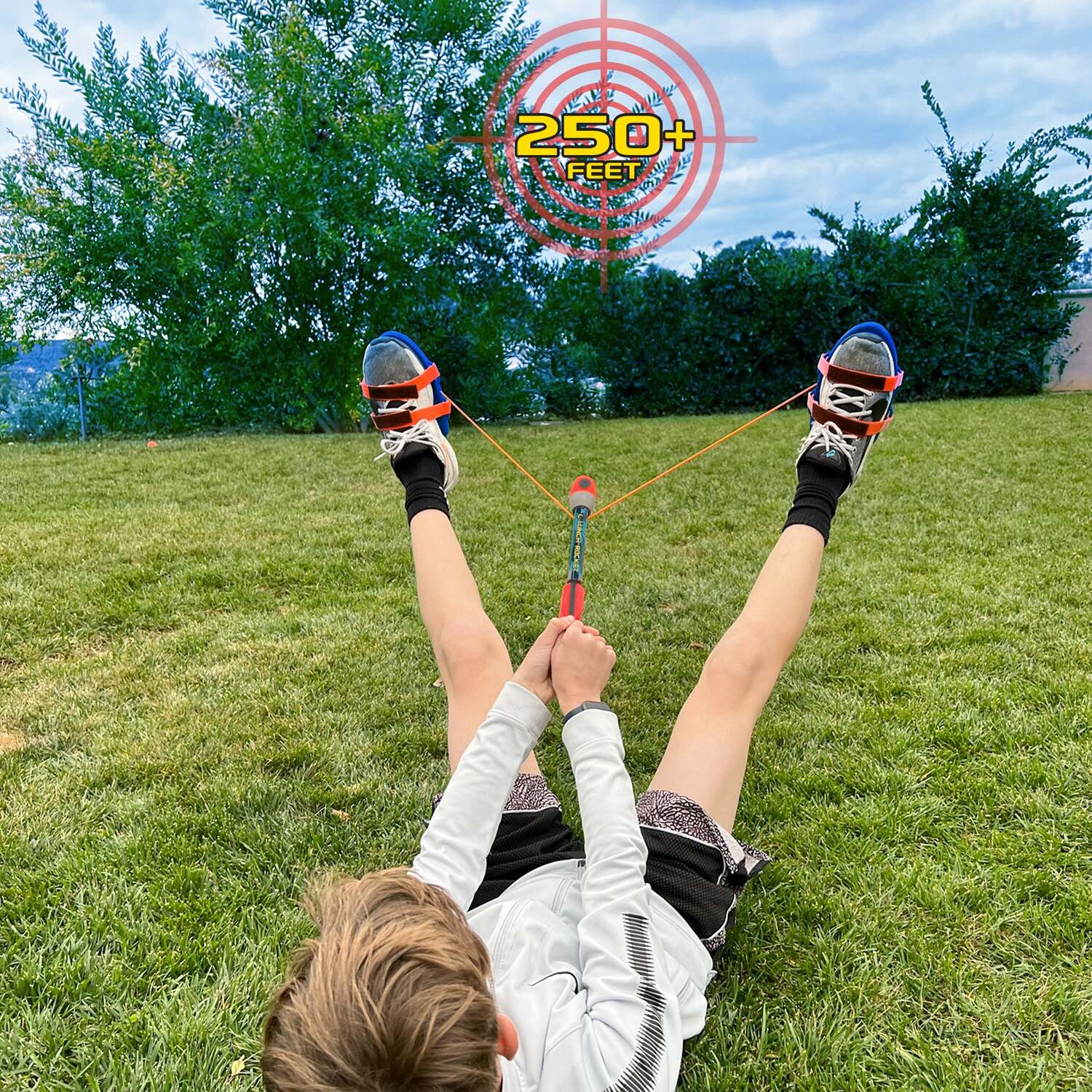 100% kid-powered! Launch foam-tipped rockets over 250 feet (76 meters). Using your kid's legs as the catapult, kids will launch rockets so high and so far that it will amaze them and their friends. Simply lay down on the grass, strap on the footpads, stretch your legs, load the rocket, pull, and launch! Launch Rocket is an outdoor STEM toy that is fun and gets kids using their muscles and moving as they learn about leverage, force, energy, and angles.