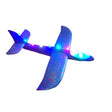 Not enough daylight to play? No problem! This versatile Glider can have you exploring the night sky in no time. Just flip the switch and off you go. Made from lightweight Expanded Polyolefin (EPO) foam construction to withstand choppy and hard landings. Built-in bright LED lights will guarantee hours of fun with three built in settings, steady, blinking and a fast-paced light show. Glider is able to perform loops, just insert the tail into the top opening for loop maneuverers. Glider measures about 18”l with a 19” wingspan. LED lights run on three built-in LR1130 batteries. For ages 4 and up. Simple assembly is required. Colors vary.