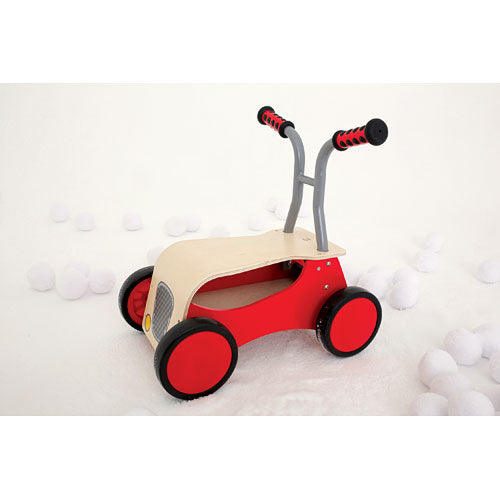 Honk if you love the idea of a sturdy little walker that grows with your child. That’s the idea behind this beautiful wooden “car” that transforms from a balanced walker to a foot-powered ride-on. Down below in the “trunk,” there’s room to transport animals, dolls or blocks that may be essential to the adventure at hand! No license required. From Hape Intl for ages 1-3 yrs.