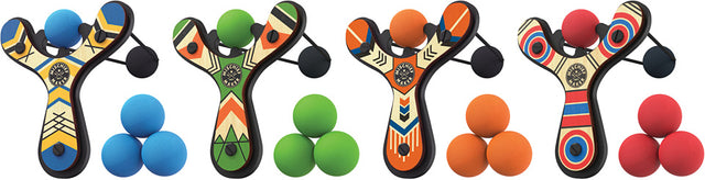 Mischief is so underrated! The soft foam balls give a teasing 'poke' when launched from this foam-and-wood slingshot. The ball stays put until launch, making it easy to use both indoors and out. Set includes slingshot with a cool, classic design, four balls and a storage bag for easy travel. Choose your favorite color and head outside to have a blast. Assorted styles available.
