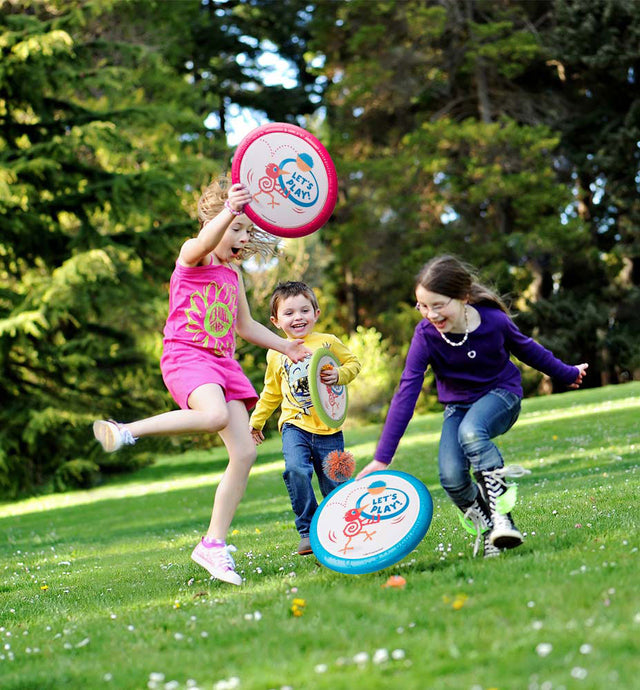 It's a trampoline you hold in your hands, then bam! You make the OgoSoft Ball bounce, fly and soar higher than high. And be the first on your block to have our custom new design! The kids won't lose this one. Let's play! Includes two 12" OgoDisks and one OgoSoft Ball.