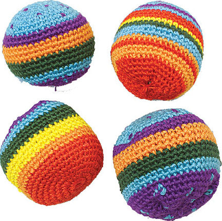 Rainbow color knitted kickballs Made of yarn, filled with pellets Item 2" diam. 12 pieces per unit Age 3+