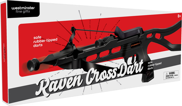 Black Crossbow comes with 6 safe rubber-tipped darts. Blasts up to 50ft range. Paper cutout target on back of box. Ages 8Y+.