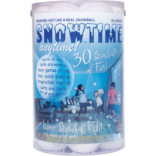 Snowtime Anytime indoor snowballs are safe anywhere! Feels like snow, made out of soft material, no mess, no slush, hours of fun! Machine washable and dryable on gentle cycle and are approximately 3" in diameter. From Play Visions , for ages 3 yrs-adult.