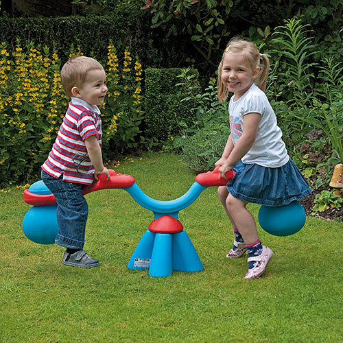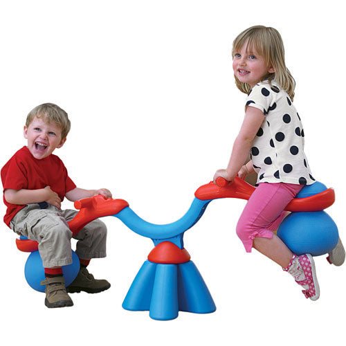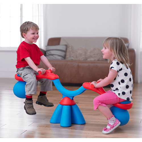 Playground fun comes home with this award-winning, indoor/outdoor super seesaw. Squealing children go up, down and around, as it bounces and spins 360?, with strength, coordination and balance along for the ride. The hollow base can be filled with sand for added stability, and foam pads protect floors. Lightweight, compact when packed away, easy to assemble, and hard to beat. From National Sporting Goods Corp for ages 2-5 yrs.