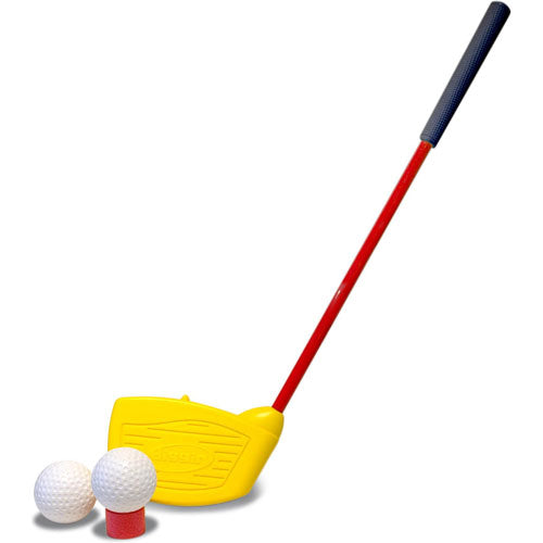 - the golf balls are twice the size of a regular golf ball, making it easy to hit. - the club head is made from power soft foam for huge drives. - Comes with two balls, soft tee, and large, soft club head. Ages 4+