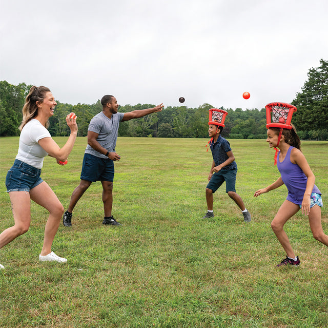 Do I look silly? I'm just using my head to win this fast moving, frivolous tossing game! For 2 teams of 2 players, indoors or out. Includes 2 inflatable baskets with straps and 8 balls. Just try not to laugh!
