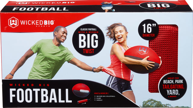 The giantness of this classic play ball amps up the fun! Play traditional football with a 'Wicked Big' twist - or make up your own new game. At the beach, backyard, or ballfield, its quality construction is no little thing. Pump and needle included. 16" long; so let the games (and good times) begin!