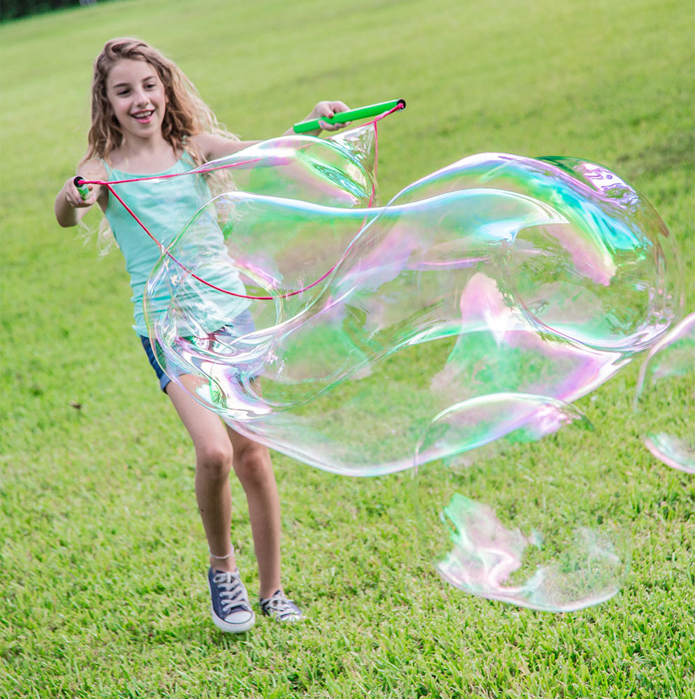 Create colorful bubbles that will have everyone saying WOW! The specially designed wand and bubble solution make hundreds of giant, high-flying and lasting bubbles. Set includes bubble mix refills, plus a booklet of tips and tricks that make it entertaining for both children and adults! Made in the USA. For ages 6-12 yrs, from South Beach Bubbles.