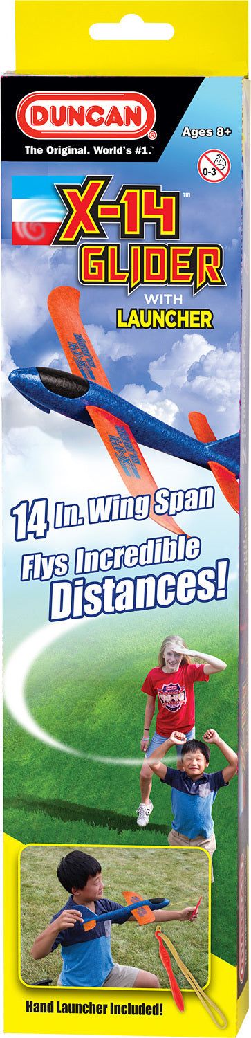 Blending the power of a slingshot with the soaring of an eagle gives you the perfect flight of the X-Series Gliders. With the X-14, the 14" wingspan packs aa punch of power, but cunning enough for quick turns and fun twists.