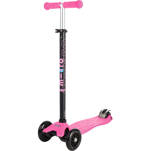 The Maxi Micro kickboard is designed for elementary school-age kids. The steering features a curving and carving action that is a little like being on a skateboard but with greater control and maneuverability. Kids love the Maxi's exceptionally smooth glide and strong 3-wheel construction. Choose between two steering options - the Pilot stick for better curving and carving, or a traditional TBar for easier balancing. The handlebar styles are interchangeable, and available as an Accessory - choose one to start and switch to the other at a later time. The Maxi's steering stick extends from 24in to 36in. The quality choice in kickboard scooters for school-age kids.