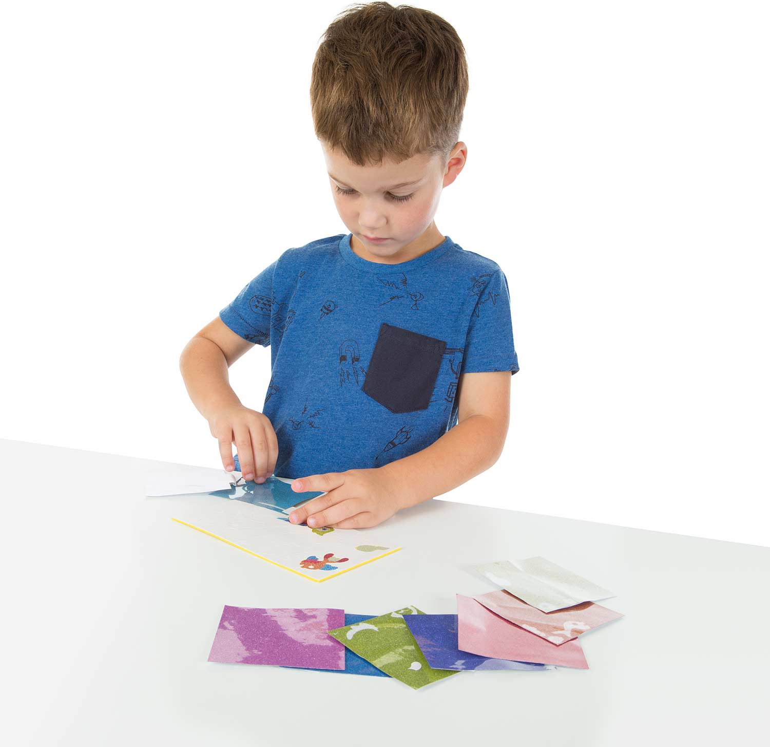 Add a rainbow of glitter to any Mess-Free Glitter project! Our patented technology lets kids get the look and feel of real glitter without the mess. One simple process creates amazing results: Just peel away a section of white paper from any Mess-Free Glitter project-or the bonus included foam stickers-to reveal the sticky surface, then press on one of the 8 glitter sheets for instant sparkle.