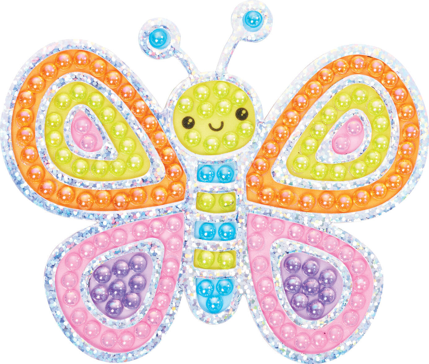 The Bubble Gem Super Sticker Butterfly features shiny foil and iridescent, Bubble Gems.