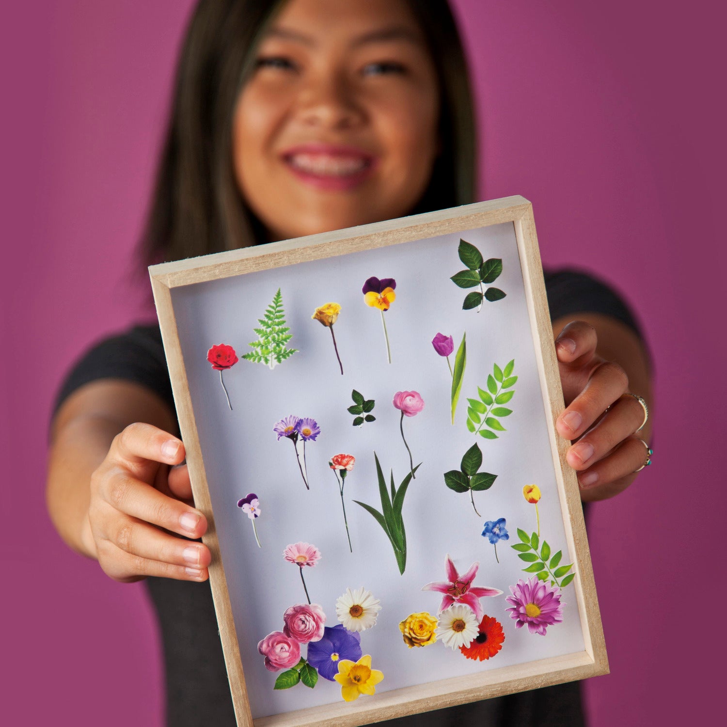 Tap into your inner flower power with this trendy flower art craft set. Simply arrange the pre-cut petals any way you like, then place them in the decorative frame. Secure it with just pins and a bit of glue. Hang it up to add a splash of color sure to brighten any room!