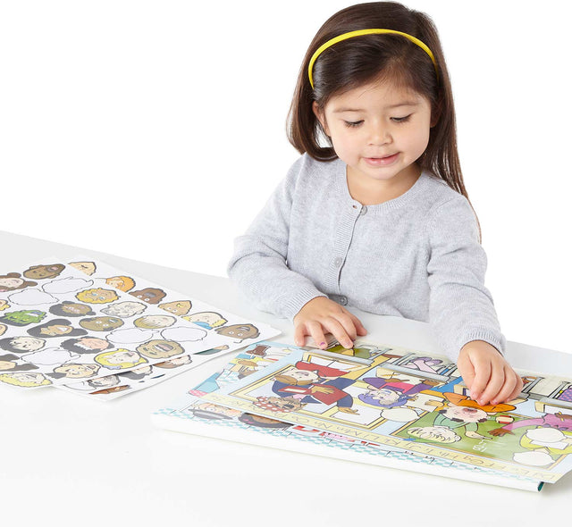 In this lighthearted sticker activity pad, kids put the finishing touches on five crowds of characters. Each sticker features a different funny face, and every scene features lots of bodies to put them on. Use the stickers to fill a scene with unique characters then change them around to mix up the crowd! The funny faces and busy scenes combine for countless possibilities and hilarious results. Contains 150 reusable stickers to fill five reusable play scenes.