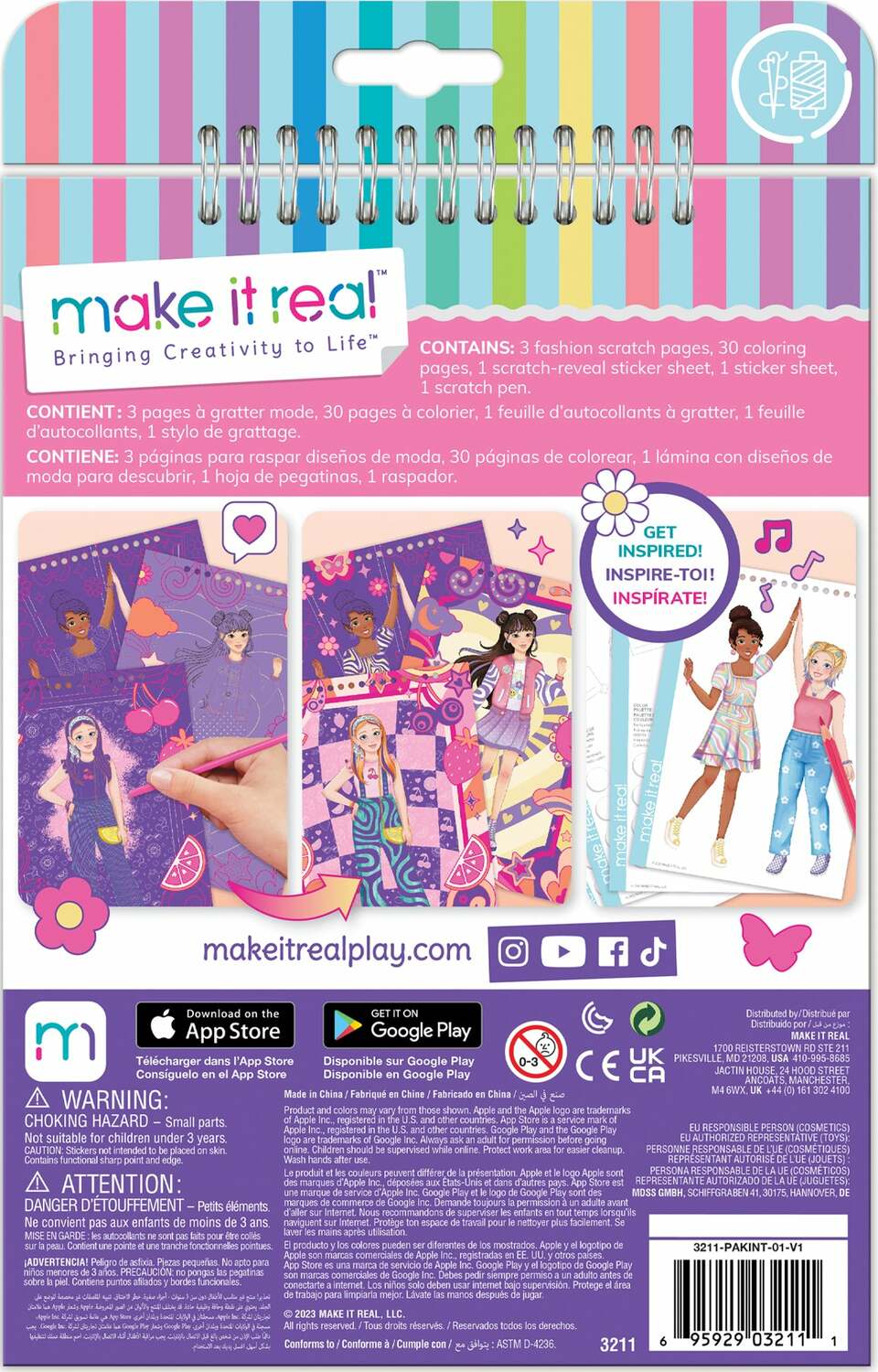 Who doesn’t love scratch art and fashion? Make it Real has combined the two for a creative blast! Scratch to reveal underlying print to customize fashion designs. Traditional coloring pages with fashion figures complete the fun for a totally custom experience. Includes a scratch pen, scratch-reveal sticker sheet, and additional stickers for extra creativity!
