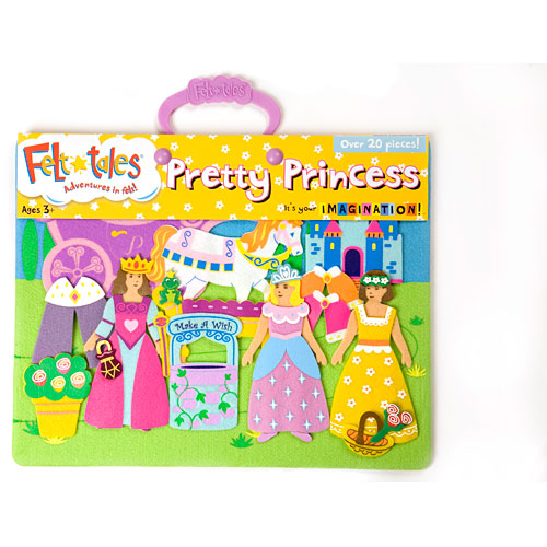 pretty Princess" lets you get ready for a night at the castle. Dress your princess in her favorite ball gown, and add a cloak as the evening approaches. Gather her handmaidens and travel by carriage. Make a wish and kiss the frog, and perhaps.... Kids will love this wonderfully crafted storyboard. There is an attractive carrying handle attached, and a storage pouch for the felt pieces is included. With each feltboard, we have created a story starter that is specific to each title to promote interaction and inspire the imagination.