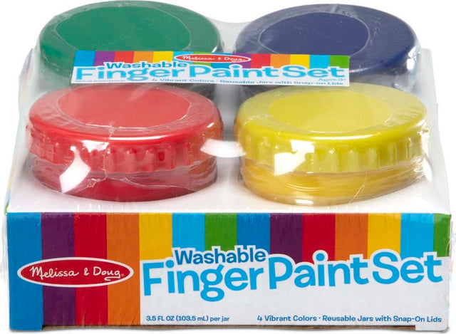 Dip your fingers into a jar of this gel-like finger paint and get inspired! Four vibrant finger paints come in 3.5 ounce plastic jars with wide, easy-grip, screw-on lids. Washable paint.