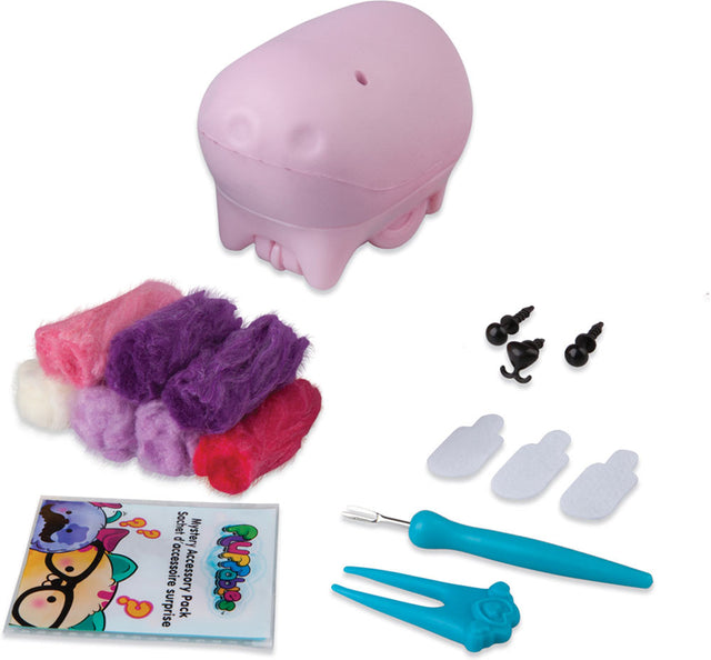 Part craft, part toy, all fun. Push fluff through the form with the stylus and create a buddy on wheels with pull-back action!