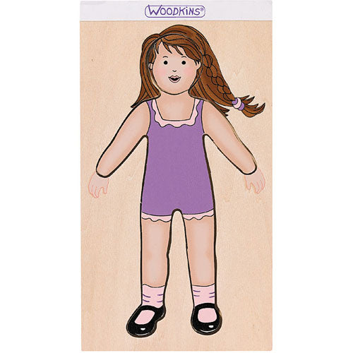 Woodkins Classic Series is now more attractive than ever! The already popular line of wooden sandwich board dressable" dolls has been redesigned with new artwork more contoured bodies, more detailing and a bit of a retro look with their Mary Jane shoes and socks. Each vinyl carry tote has a new beaded handle. Each Woodkins includes one sandwich board doll set, four magnetic faces, eight pieces of fabric and a vinyl carry tote with a new beaded handle. Children can let their imaginations run wild creating new looks, new moods and new stories for their dolls every time they play!