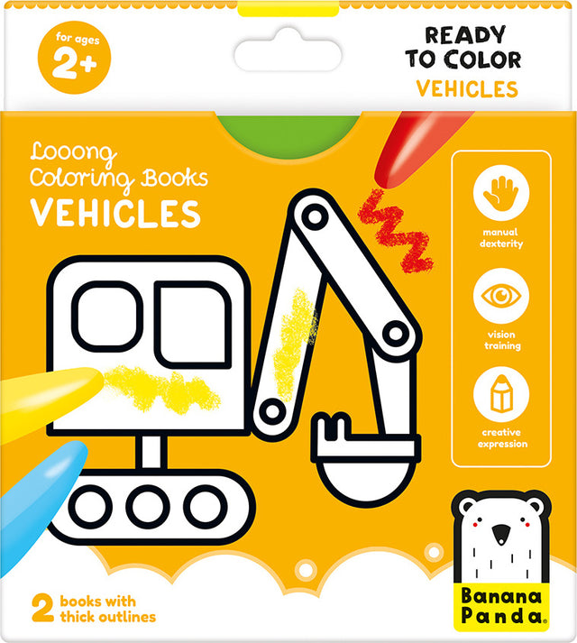 Vroom! Vroom! So many vehicles! Crayons at the ready – it's time to set off on a coloring adventure! This creative set contains 2 long (37.5"!) accordion books with 23 simple illustrations with thick outlines, which will encourage young children to pick up their crayons and do some coloring.