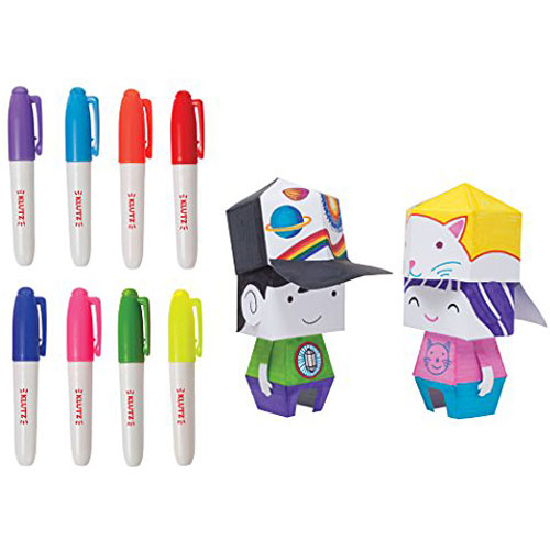 Includes 98 permanent mini markers, 2 punch-out paper figurines
