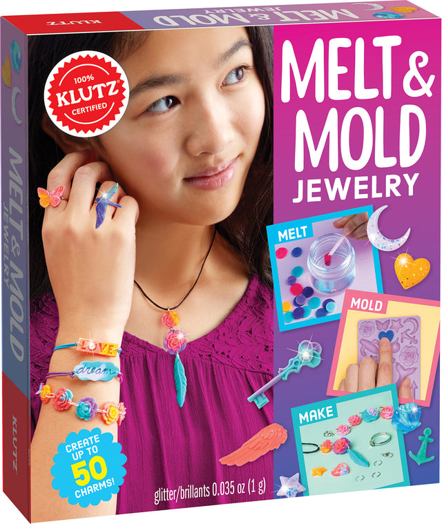 Design your own trendy jewelry by melting magical plastic pellets with warm water. That's right, just using warm water! Then, mold them into a cute cactus, mystical moon, or any of the 19 stylish shapes included in the silicone mold. Create up to 50 charms and make 10 different projects: pendant necklaces, rings, earrings and bracelets. Everyone will melt over how cute your creations are!