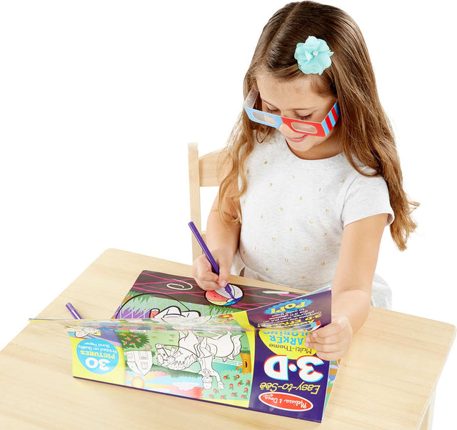 Create colorful, enchanting scenes that pop! There are 30 pages of color-coded illustrations to fill in with markers. Use the included 3D glasses to transform the colored pages into multi-dimensional looking scenes warm colors like red and orange come forward, while cool colors like blue and green recede into the background! A terrific activity for artists ages 4 and older, the unique coloring and viewing experience promotes fine motor skills, color recognition, and creative play.