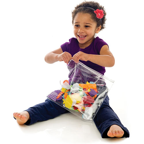 Put your imagination to work as you layer simple felt shapes and wiggly eyes onto a child-sized felt board. Perfect for preschoolers, this open-ended activity will reinforce color and shape recognition, fine motor skills, patterning and creative thinking. No mess and great for travel, this felt board includes a neat and tidy storage bag.