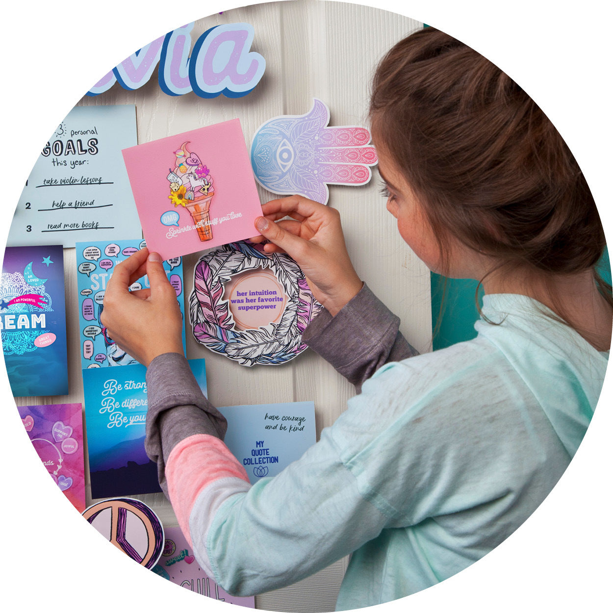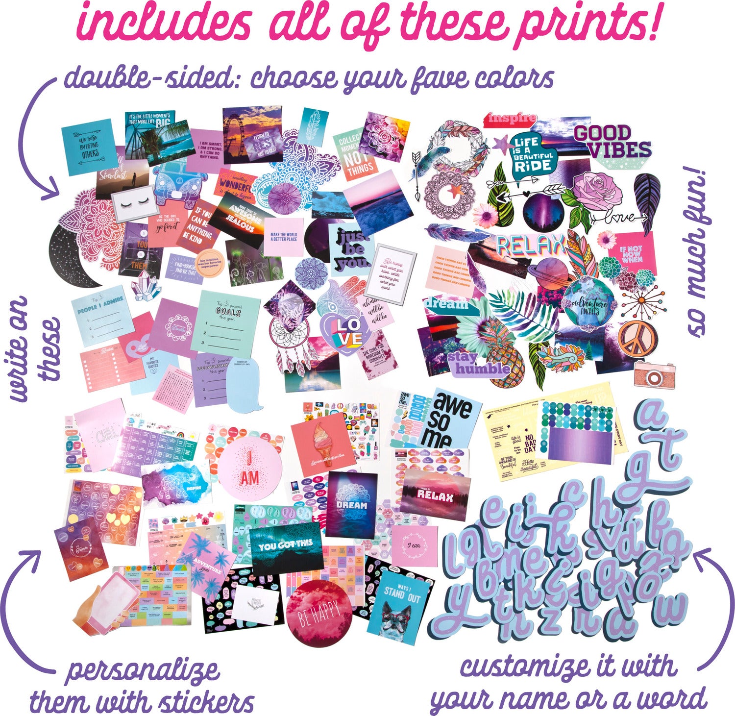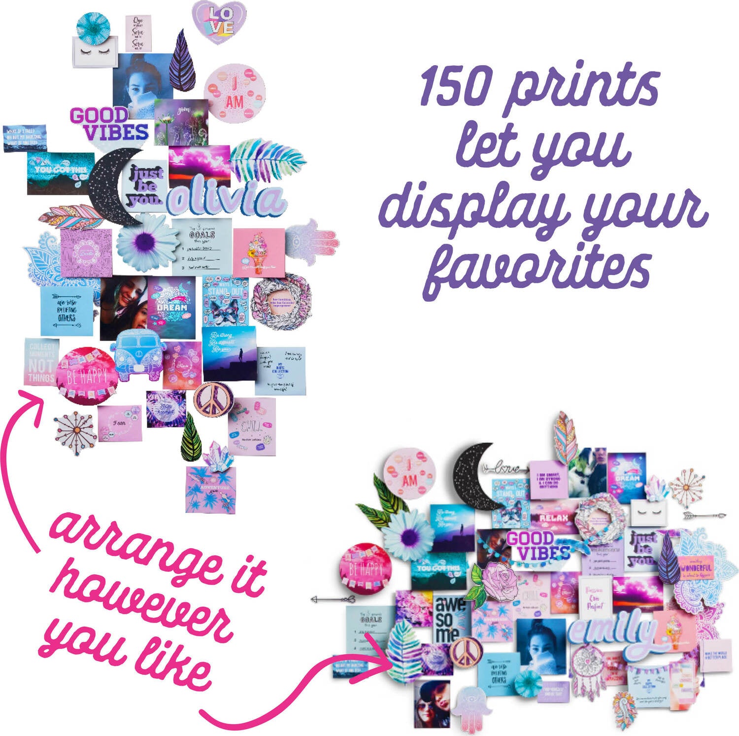 Turn your space into a true work of art showcasing your individuality and personal style. The colorful pictures, cards, and cutouts found in the Wall Collage set can be arranged any way you like to show off your hopes, your dreams, and all your favorite things. Your wall, your style - and endless possibilities!