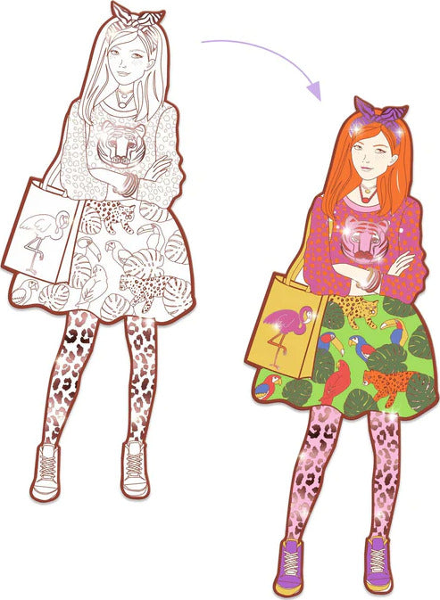 A parade of girls wearing colorful outfits for you to color in however you'd like! Four large outlines offer outfits covered in patterns and adorned with metallic areas to make the models look even better!