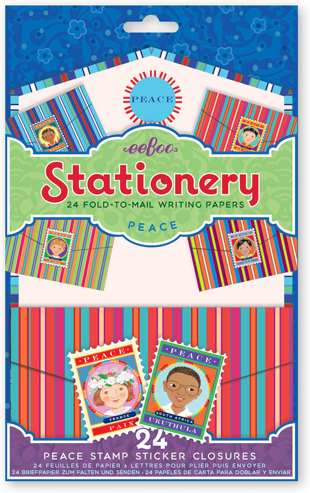 The simple act of sending a personal note can mean so much to the recipient. Make it easy with this chunky pad of 24 folding stationery sheets that fold into envelopes! Write your letter, fold, and seal with a sticker. All that's left is to write in the address. No envelope needed. Children of the world adorn this stationery set. Fold and seal with a child from around the globe and "peace" written in their local language.