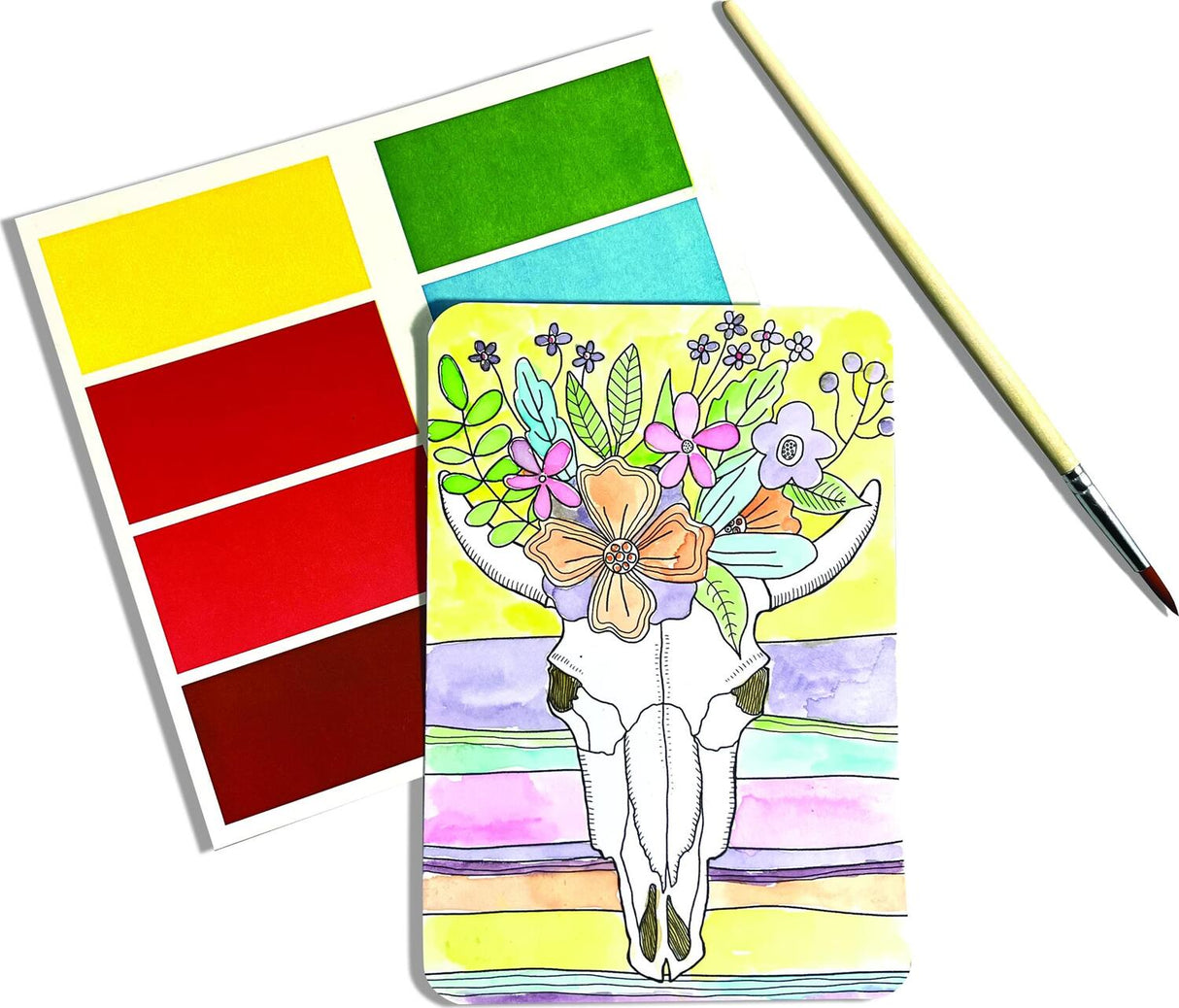 This watercolor art kit will transport you right to the desert! It's all beautifully outlined on the included watercolor postcards. The best part though, is when you make them your own using the included paint palettes. A paint brush and color guide (if you choose to use it), is also included. It's everything required to make perfectly sized watercolor paintings for friends and family. This is also an inspiring birthday gift for young artists who can then mail their watercolor postcards to friends!