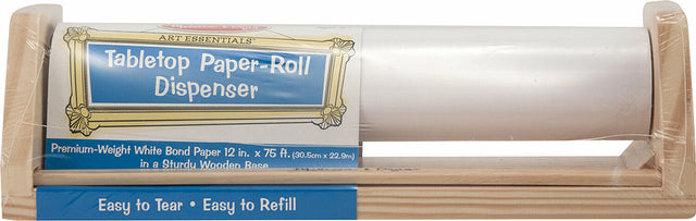 Unroll a little or a lot ... With this compact tabletop dispenser, it's easy to get just the right amount of drawing paper! A child-safe tear strip makes it simple to achieve clean edges, too. The sturdy wooden dispenser comes preloaded with a 75-foot roll of premium white bond paper-perfect for crayons, pencils, markers and paints. Paper refills available.