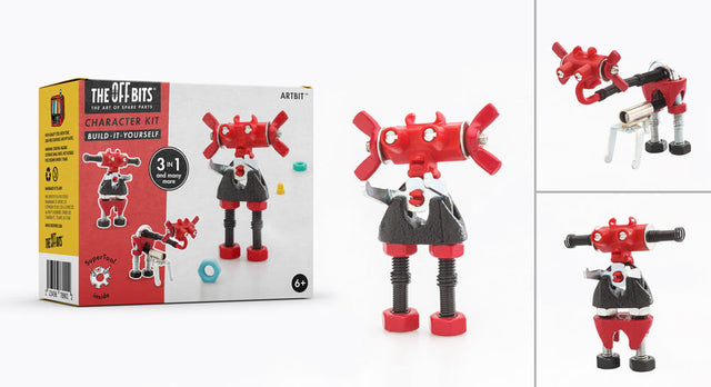 This unique and quirky construction kit uses upcycled bits and pieces to build a mini robot contraption. The kit makes at least 3 different models, and there's even a special code for sharing what you made with an on-line community of other creators! Red Artbit has a wild imagination!