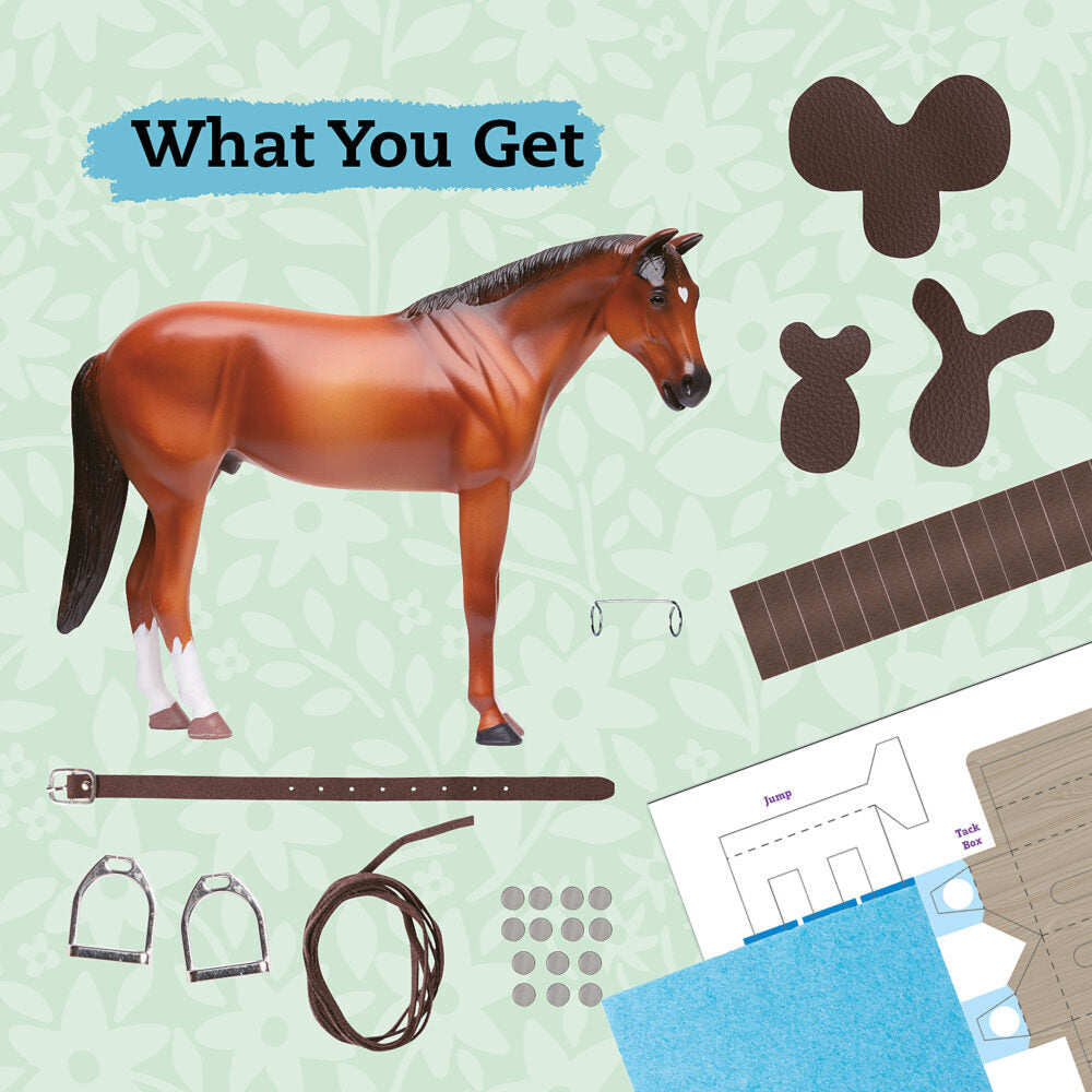 Learn all the essentials of caring, loving, and riding horses-with your very own model horse. From what they eat to how they sleep, the photo-filled book covers everything a budding horse-lover wants to know about their favorite animal. Then, test your new knowledge and skills by crafting a cozy blanket and tiny tack from faux leather. With simple projects and lots of learning, this kit is a guaran-steed hit!