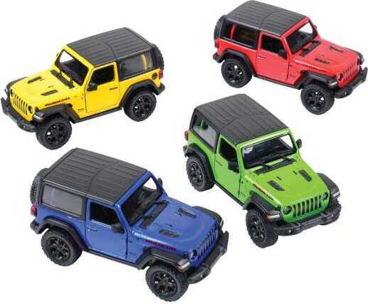 Replica hard top jeep ready to off road. Pull back action and doors open. Made of metal and plastic. Item 5" L. x 2" W. x 2" T., 1:34 Scale Replica.