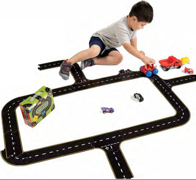 You can design endless road layouts using 24 chunky interchangeable puzzle pieces. Add to the building fun with your favorite toy car & trucks.