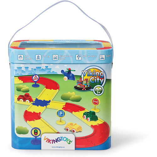 32-piece Road Set, includes: 24 pieces of track, 4 road signs and 4 Little Chubbies vehicles.