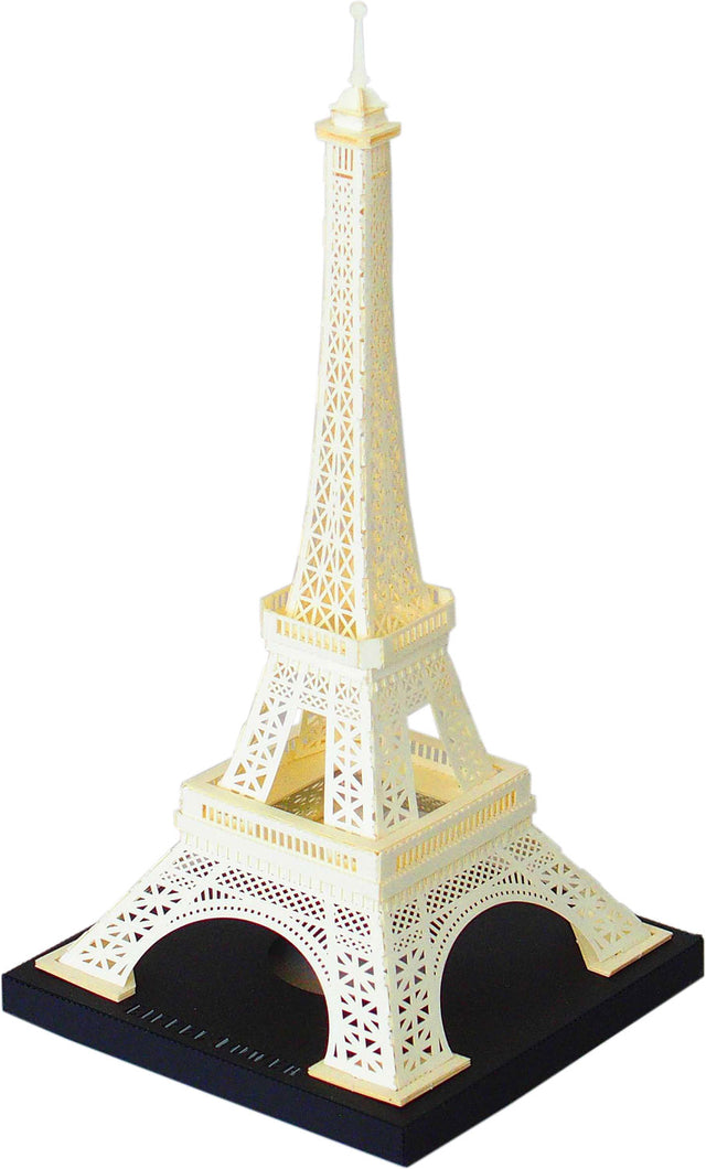 Take your papercrafting to the next level with paper nano! Paper nano uses laser-cutting technology to create thin sheets of paper that can be folded to build small-scale, highly-detailed architectural models! Fold this set into a miniature model of the Eiffel Tower. Includes detailed color instructions and folded display case.