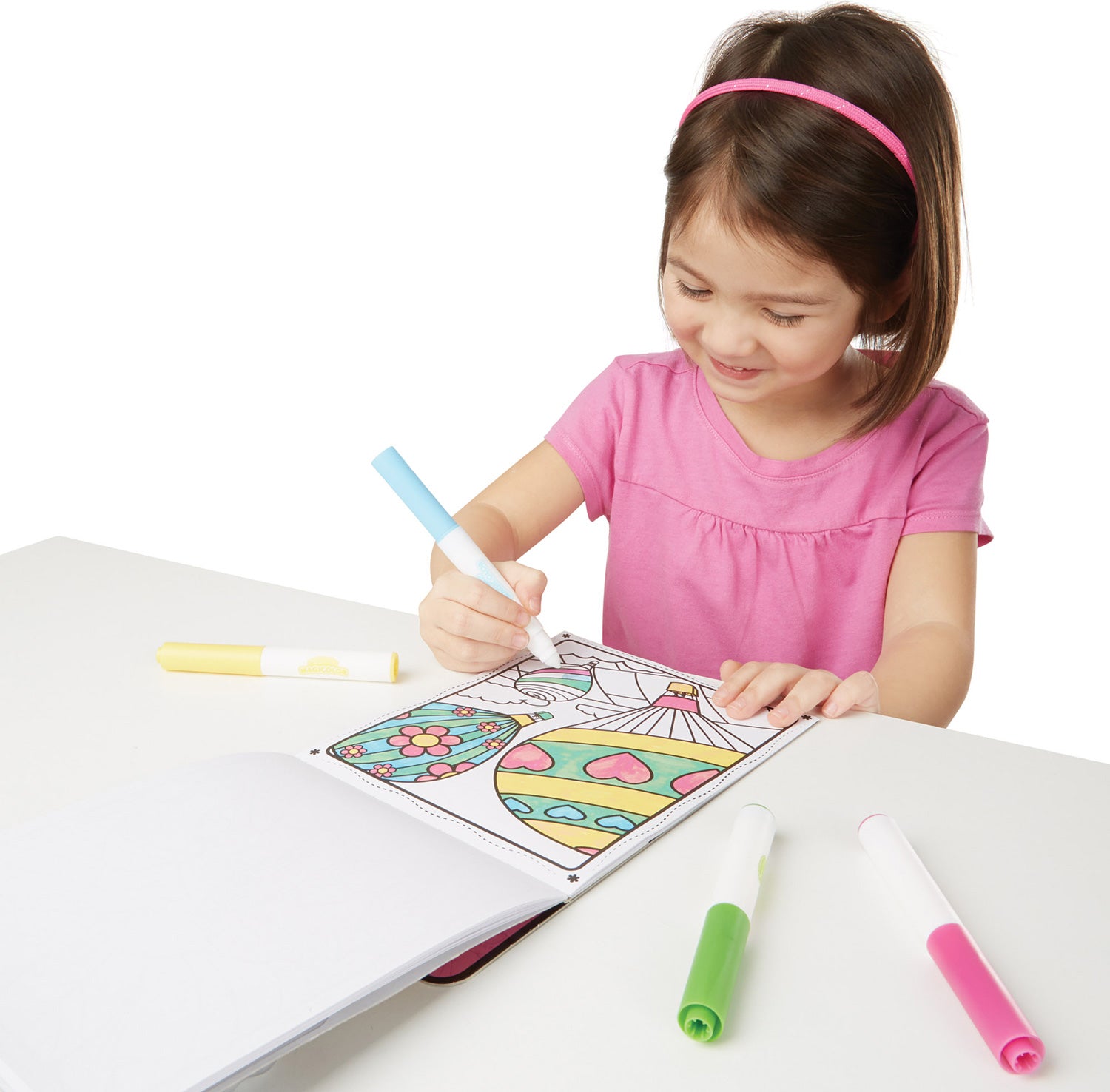 Our amazing Magicolor technology lets children pick a marker, fill a scene, and see colors magically appear on the page--all completely mess-free! Ink in the four included markers is invisible anywhere else but creates instant color on the 18 pages of scenes featuring butterflies, fairies, and girls doing everything from painting to riding a bike. As a bonus, the spiral-bound book's all-inclusive format comes with handy storage for the markers, making it great for travel!