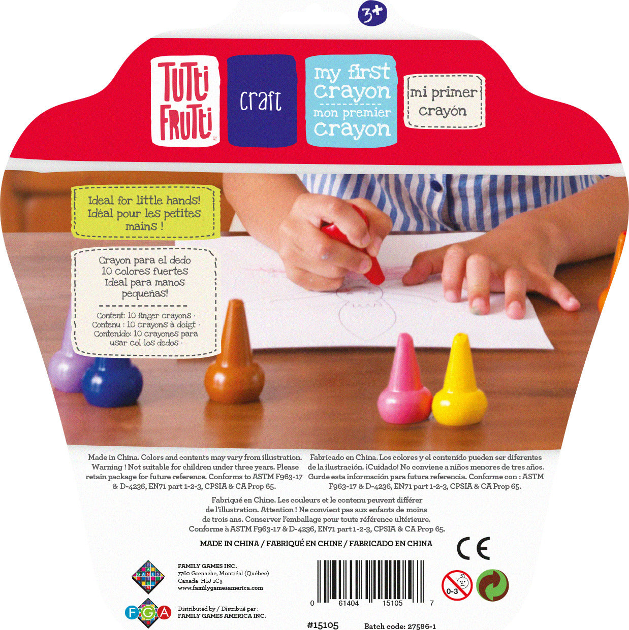 Made to fit snugly in the palm of little hands, this selection of 10 bright colored crayons make very first drawings a breeze.