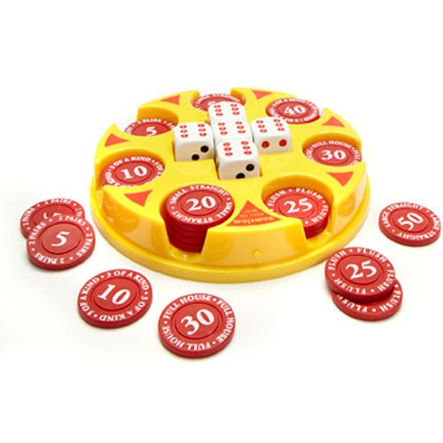 Players have 3 rolls to achieve a combination designatedon the chips (large straight, flush, 2 pairs, etc.). After eachroll players may keep as many dice as they wish andre-roll the rest. There are only 4 chips percombination, so try to get the best one beforethey run out!With its convenient pocket size, you can take it anywhere.The tray contains a chip rack and slots to hold the dice.If you're with family or friends, and want to have a rollinggood time, Pocket Yamslam is a great choice. Whether ata party, spending quiet time at home, need some extra funfor vacation, or just want to enjoy it on the go, PocketYamslam is a perfect traveling companion! Pocket Yamslam is the travel version of the popular Yamslam. 1 to 4 players Play Time: 15 minutes
