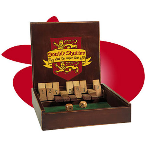 Double Shutter is an enticing and irresistible game that combines tactical choices, luck and fun for the whole family. Roll two dice, add the dots and find the best combination of numbers to shut two rows of nine tiles. This game is very addictive, always remember to play in moderation!